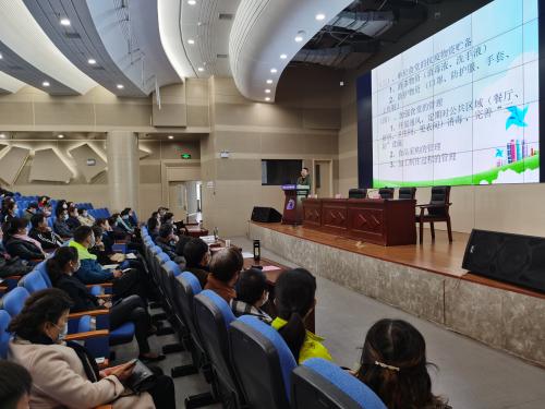 在当天的培训中,市市场监督管理局餐饮服务监管科副科长、主治医师柳正林同志分别就单位食堂的管理和从业人员的个人管理两个方面,从政府监管层面对抗疫期间的学校食堂管理,进行政策解读和防控流程指导。市餐饮商会副秘书长朱红久同志还为大家进行了《学校食品安全与营养健康管理规定》专题讲座。