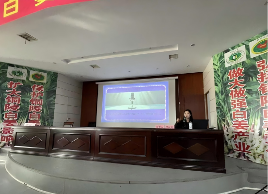 培训环节中,铜陵直播学院吴仪陵老师以“白姜直播带货入门实操”为主题率先开讲。授课过程中,吴老师结合铜陵白姜“皮薄肉嫩、渣少味辣、香气浓郁”的产品特性,从直播设备基础配置、白姜专属账号定位搭建、带货话术设计技巧等核心知识点切入,用通俗易懂的语言拆解直播带货逻辑,通过模拟白姜直播场景演示产品展示、互动答疑等关键环节,帮助学员快速建立直播营销认知框架。